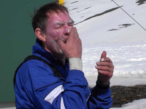 pict0021 Published 27.5.2014 at 510 × 383 in Viðburðarík vorferð á hvítasunnu 2002 ← Previous Next → Sólin fór misilla með menn. Jósavin reynir að bjarga andlitinu.