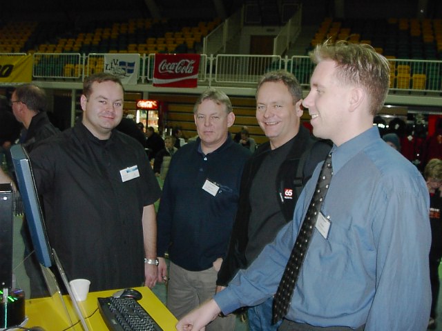 PICT0038 Published 11.8.2014 at 640 × 480 in Sýning og árshátíð gengu vel ← Previous Next → Rikki, Sævar, Ingi á Bílaver og Birgir í Haftæknibásnum.