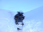Vert er að hafa á hreinu að RX-1 er ekki besti púðursleðinn eða fjallaklifrarinn á markaðinum, enda ekki ætlað að vera það. Þetta á auðvitað ekki síst við um stutta sleðann sem prófaður var að þessu sinni. Mín upplifun af sleðanum er hins vegar sú að hann sé vel meðfærilegur í hliðarhalla og á meðan hann hefur spyrnu klifrar hann endalaust upp brekkur. Stutta beltið hentar ekki í púðursnjó, frekar en hjá öðrum stuttum sleðum, en mér fannst hann samt ótrúlega duglegur. Gríðarlega spennandi ferð upp Geldingsárgilið í Vaðlaheiði, í miklum lausasnjó, var einn af hápunktum helgarinnar en fékk snöggan og sorglegan endi þegar ökumaðurinn fipaðist eitt augnablik í þröngum skorningi. Þá var gott að skóflan var með í för.